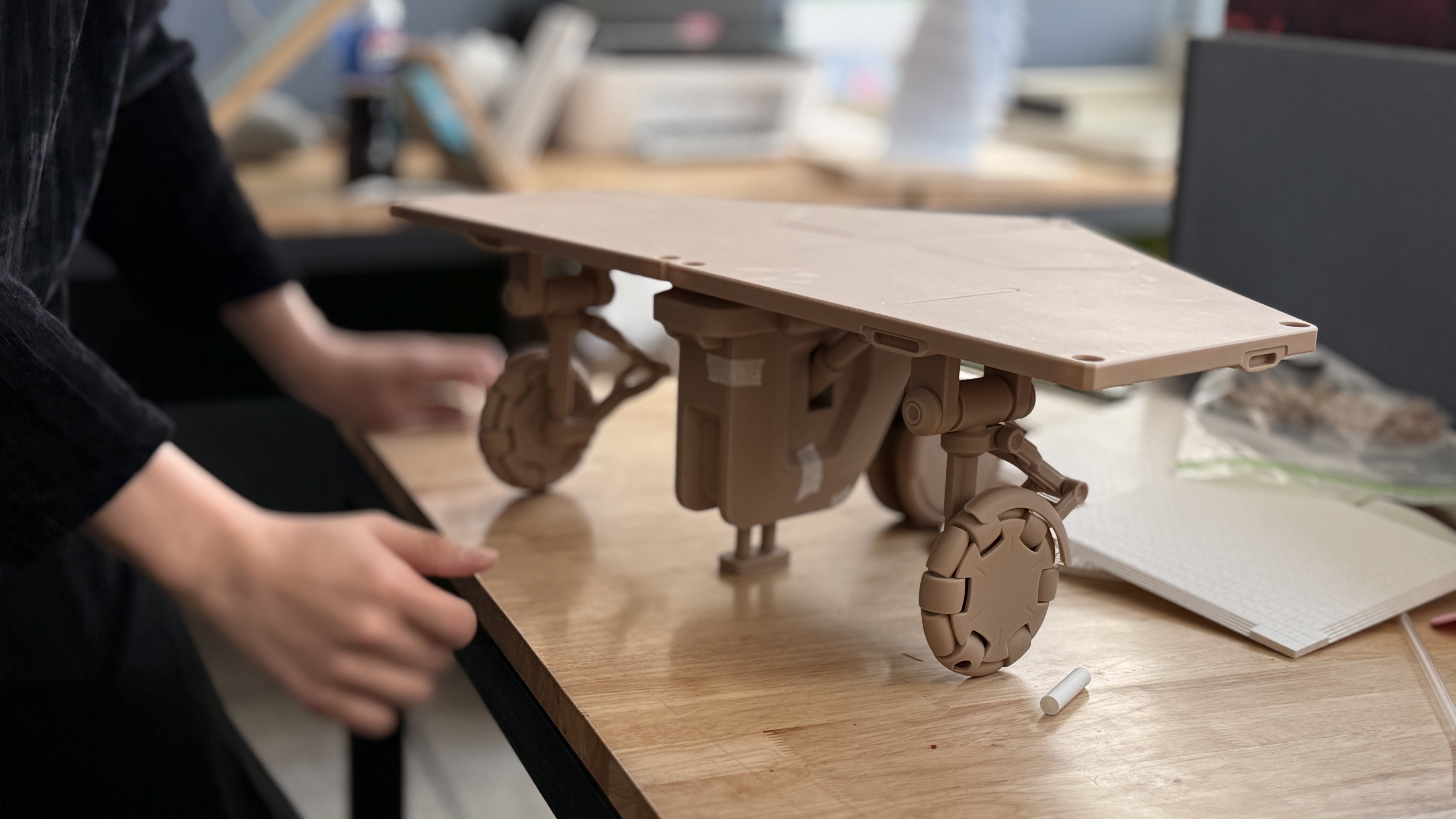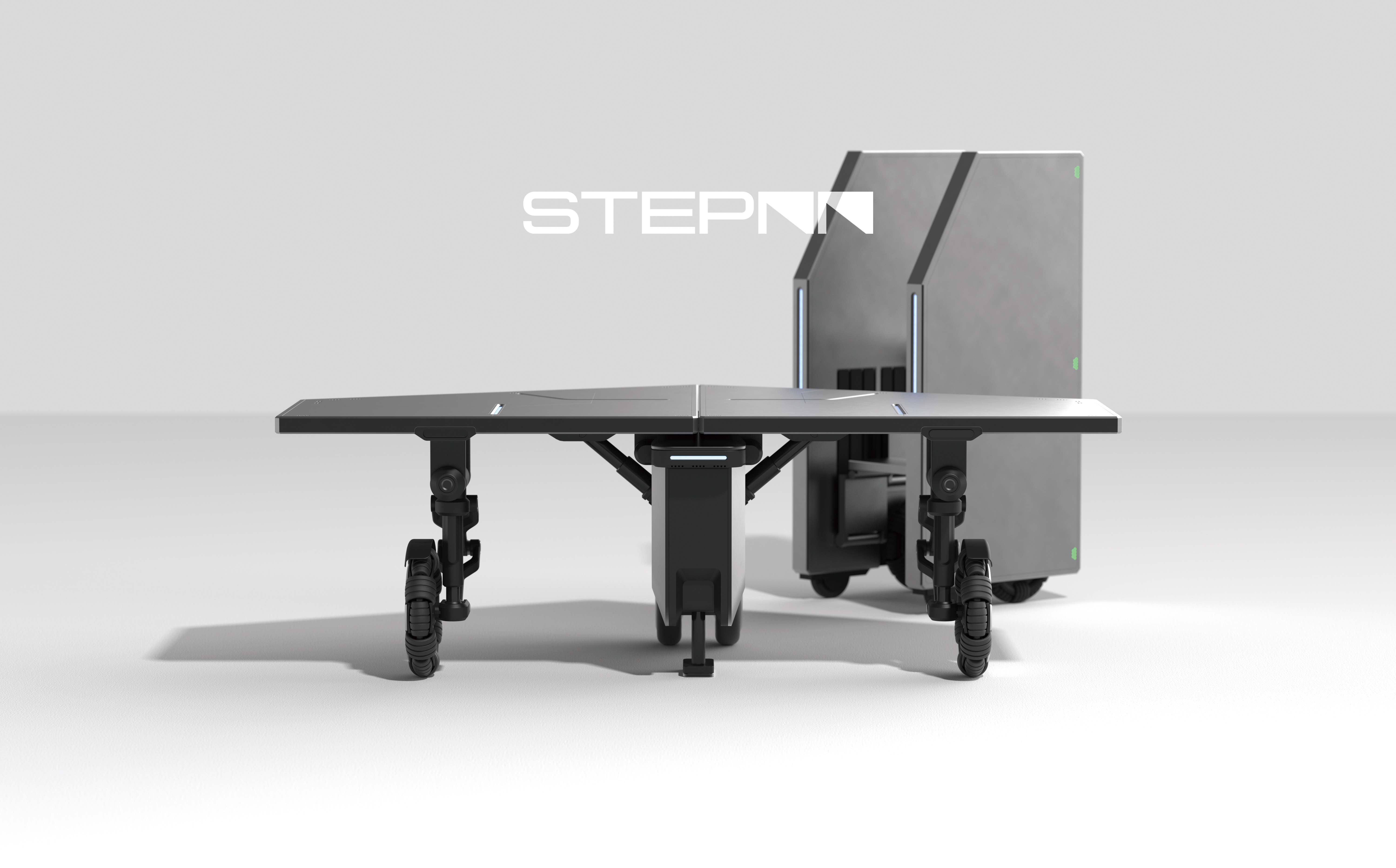 STEPNN은 알파와 베타 모듈로 구성됩니다. 알파 모듈은 지형을 스캔하여 이착륙 스팟까지 베타 모듈들을 조정하며 소형 관제 역할을 합니다. 또한 승객에게 지상과 이착륙장 사이의 계단을 제공합니다. 베타 모듈들은 120°의 안정적인 도킹 구조를 가지며, 알파 모듈의 명령에 따라 경사도에 대응하여 UAM이 이착륙할 수 있는 경사도 2° 이하의 상판을 만듭니다.