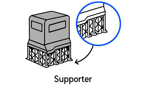 서포터는 3D 프린팅 중 공중에 떠 있는 구조물이나 돌출된 부분을 일시적으로 지지하기 위한 구조물입니다.