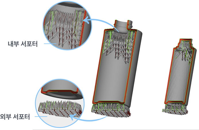 주로 출력물의 하단부 또는 내부 공중에 떠 있는 부분에 자동 생성됩니다.